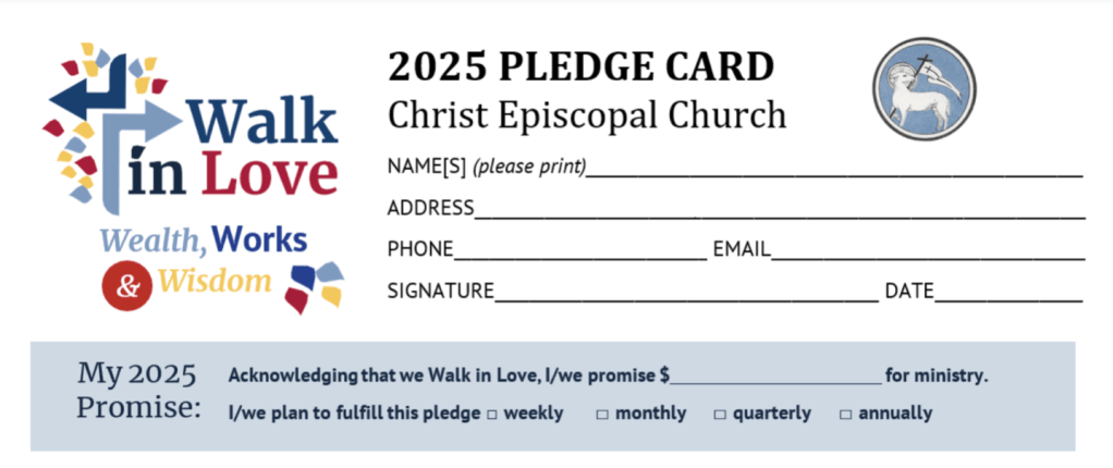 I invite you to participate in this new era of Christ Church by expressing your gratitude through generous giving and entering more deeply into the ever-giving flow of divine munificence! Mark your calendars and make sure to join us for our Pledge Ingathering on Sunday October 21st.