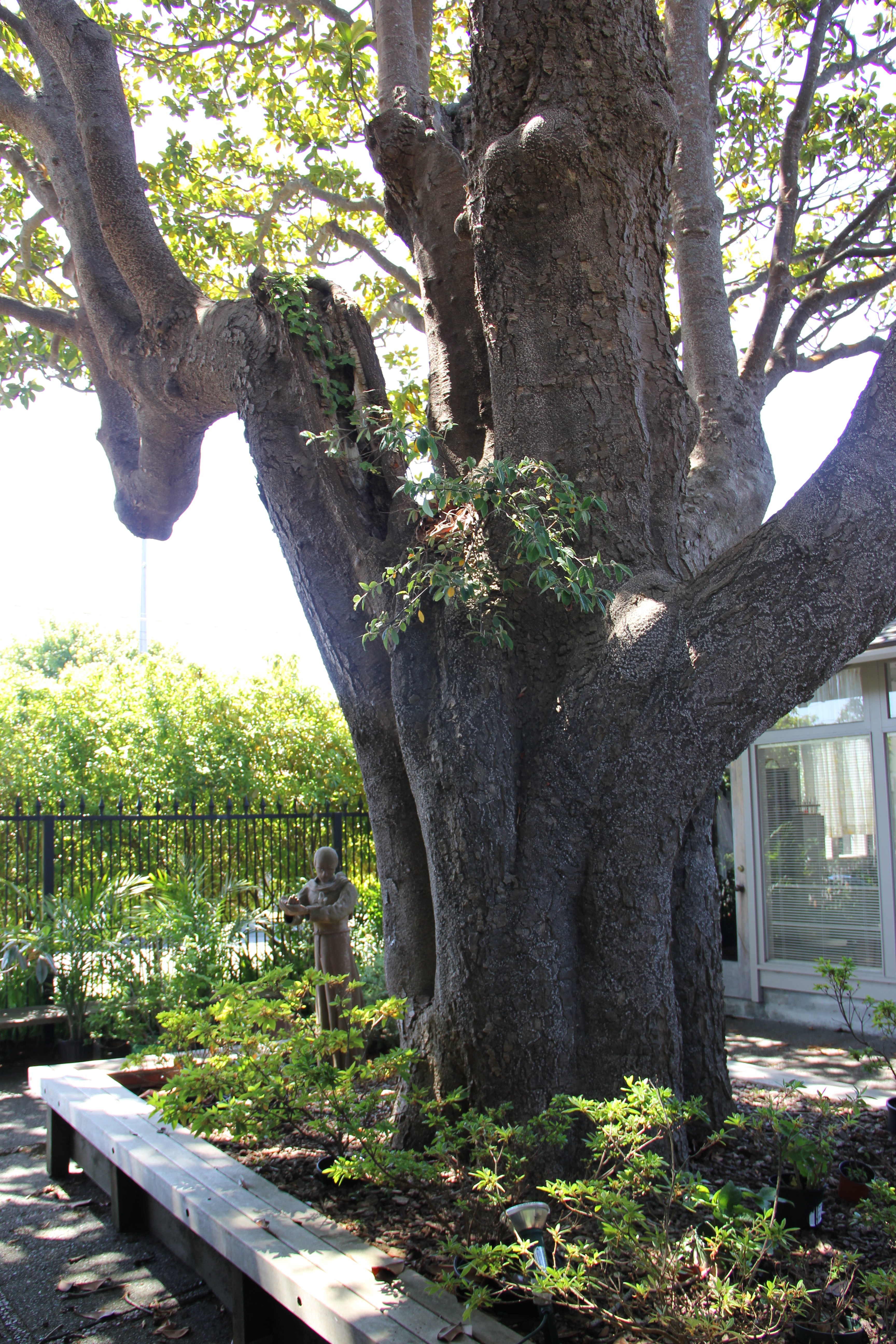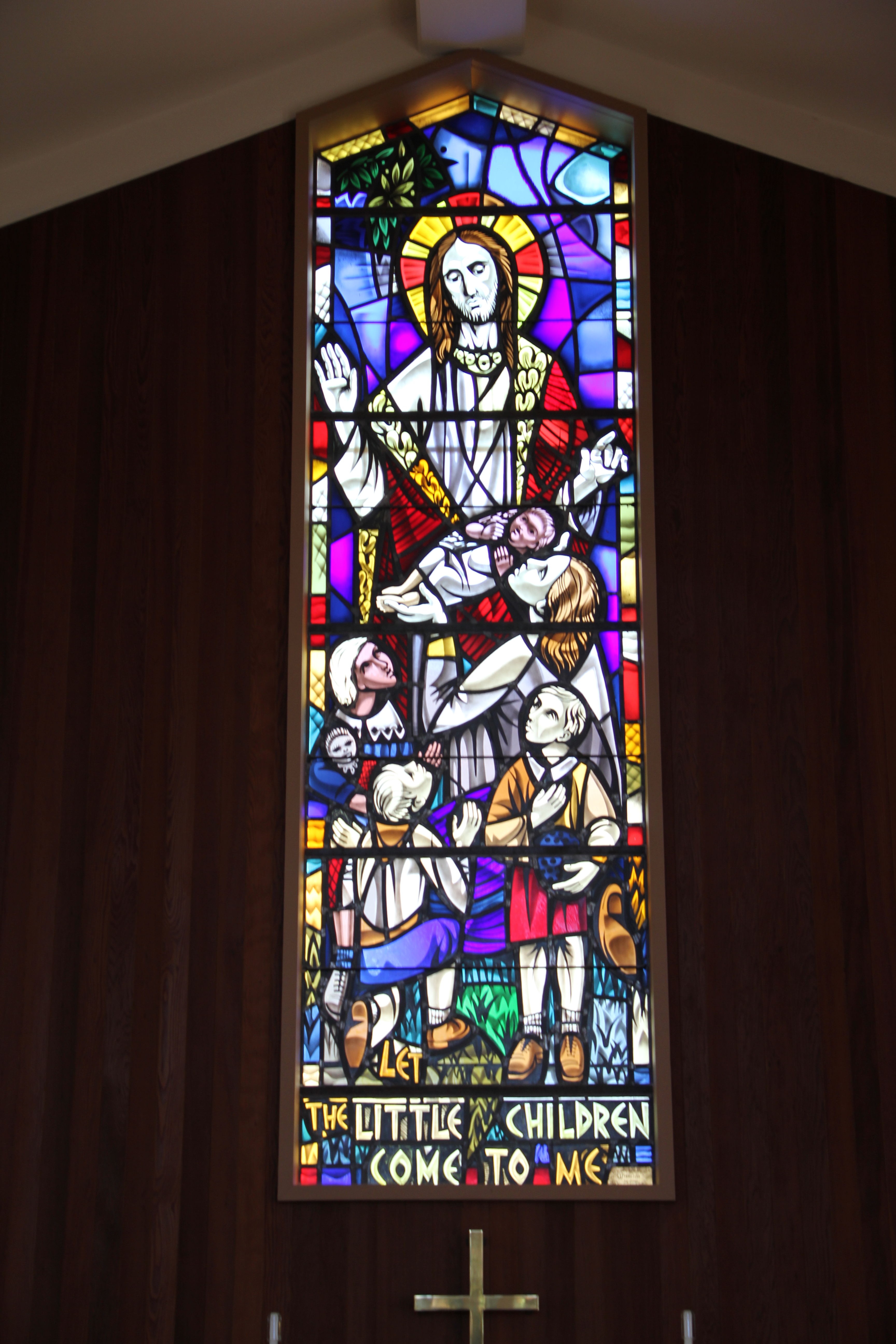 The floor has a subtle labyrinth painted on it. A window wall on the north end of the Chapel frames a view of the magnificent magnolia tree and the St. Francis statue created by one of our parishioners.