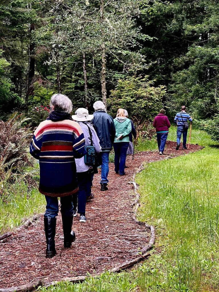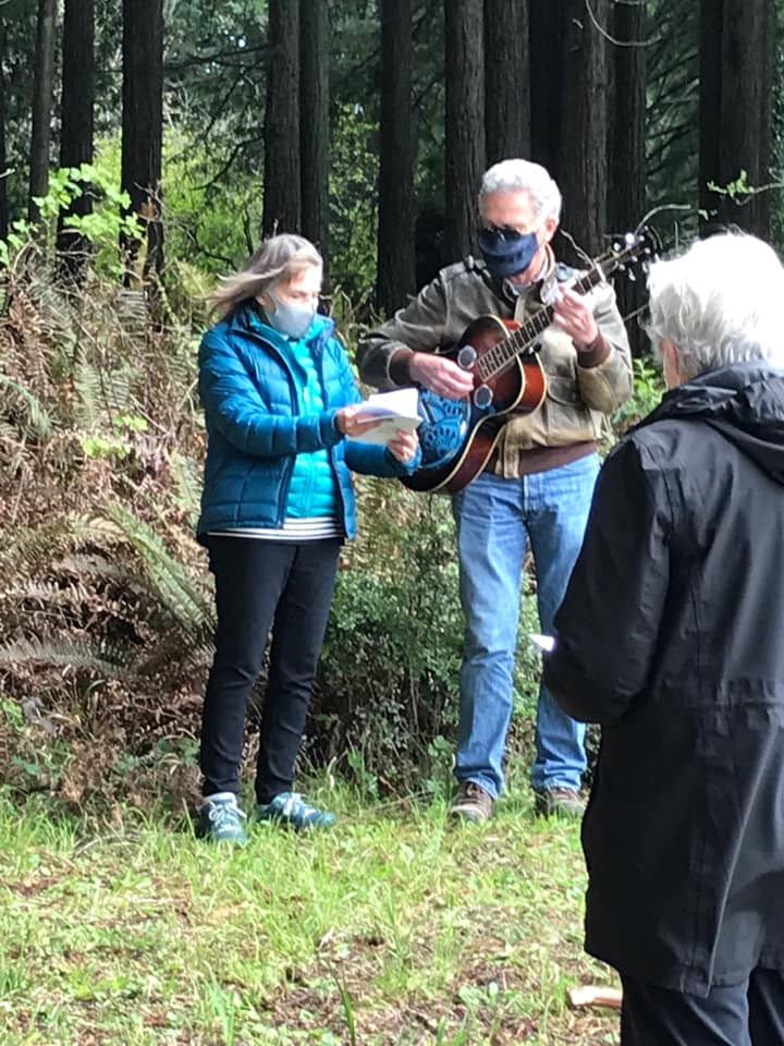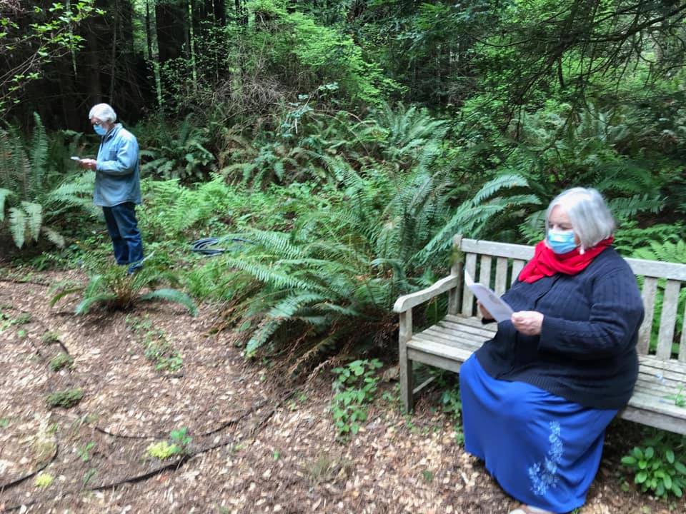 Like John Muir, we appreciate the term “saunter” as it invites us to walk more slowly and mindfully and to bathe in the forest trees’ ancient and verdant light. Although some have called our church building the “Cathedral of the North Coast,” it is only when we gather for Sacred Saunter services at Sequoia Park that we feel we are in the true Cathedral of the North Coast. Nature mystics such as St. Francis, Teilhard de Chardin, Mary Oliver, and the Celtic Saints have been our favorite guides so far as we glorify God among the giant sequoia trees.