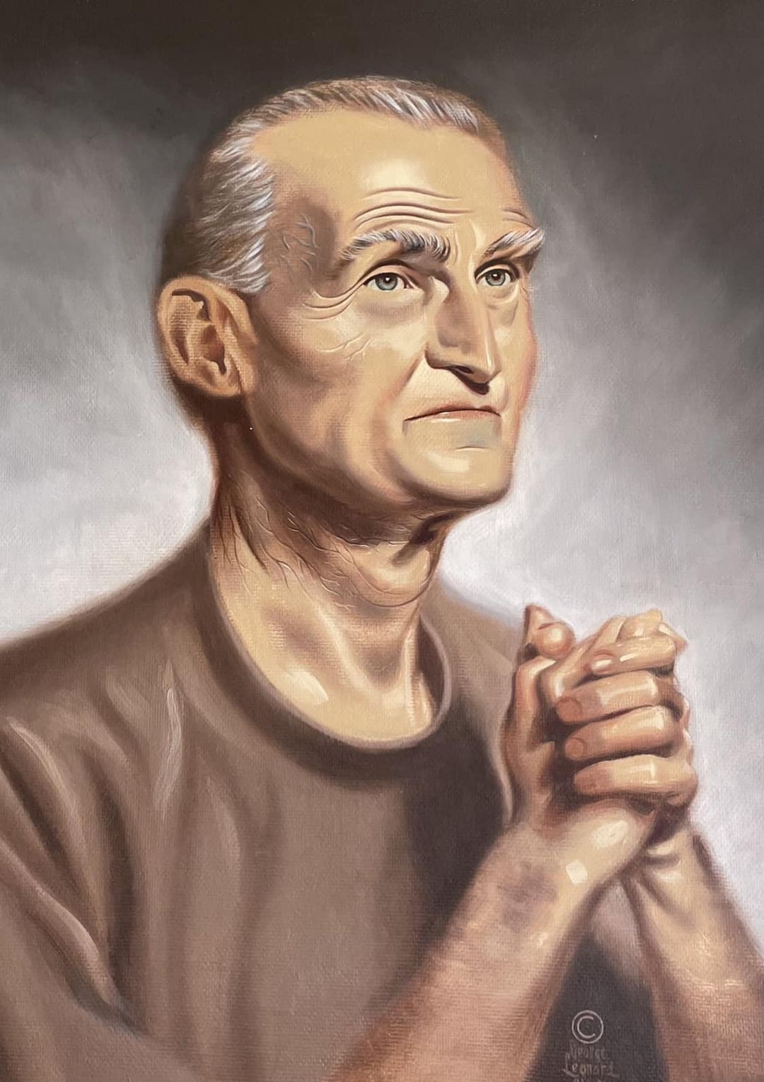 Episcopal priest and artist George Shultz (1896-1971) served as a priest at Christ Church Eureka during some summers in the 1960s when Bishop Jack Thompson was on vacation. Affectionately known as “Father Shag,” he was from Missouri and served at several Episcopal parishes in Oklahoma. His portraits of the twelve apostles are on permanent loan to Christ Church, where they have been installed in Lewis Hall.