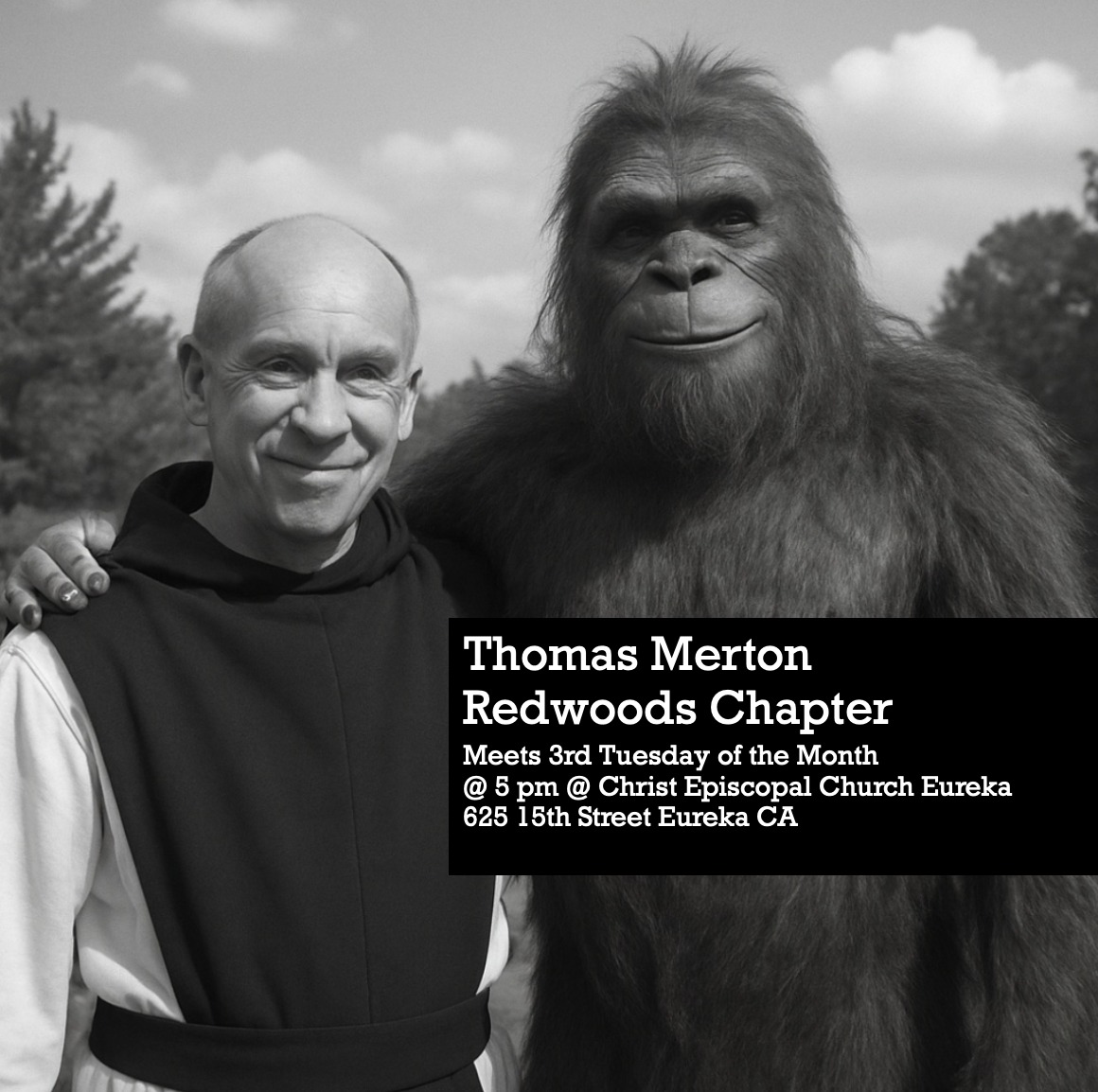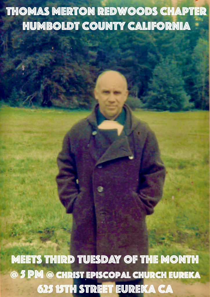 The Thomas Merton Redwoods Chapter (Reading Group) meets at the Chapel of our Merciful Saviour (on the corner of 15th and G Streets – 1433 G Street) on the campus of Christ Episcopal Church Eureka CA on the third Tuesday of the month at 5 PM to 6:30 PM. We are currently reading aloud Merton’s New Seeds of Contemplation. No prior reading or knowledge is required. Copies of the book are available and participants are invited to join in the discussion, to read sections aloud, or to simply listen. We gather at 5:30 PM with the singing of The First Song of Isaiah (Isaiah 12:2-6) to the hymn tune of “Thomas Merton,” composed by Ray W. Urwin. We then pray the Collect for Thomas Merton. After the opening prayer, we have a general check-in for announcements and then proceed to read aloud from selected works of Thomas Merton. We conclude our discussion at 6:30 PM, at which time we transition into an optional Centering Prayer gathering for further reflection, including a half hour of time devoted to silent prayer. The Centering Prayer time concludes at 7:30 PM, when participants are encouraged to depart in silence.